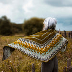 Artus is a triangular shawl that is worked top-down from the center out, starting with a classic Garter Tab Cast On. The shawl features narrow bands of 1x1 color created using the stranded technique. The eye-catching border of the shawl is worked using the mosaic technique, holding only one strand of yarn on every row.