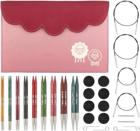 - Aesthetic and User-Friendly Packaging : This interchangeable knitting needle set comes in an aesthetic and functional bordeaux fabric case for easy storage and organization. The bright hue on the case and the adorable sheep motif adds a touch of playfulness.