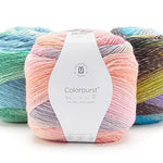 Universal Yarn Colorburst is a single-ply blend of superwash Merino wool and acrylic that features spectacular self-striping colors. With gradual shifts from one shade to the next, Colorburst will do all the work of changing colors for you! This DK weight yarn is machine-washable and dryable, making it a great choice for any knit or crochet project from afghans and baby blankets to to sweaters and shawls. With a whopping 660 yards in each 200g cake, Colorburst is a great value for large projects too!